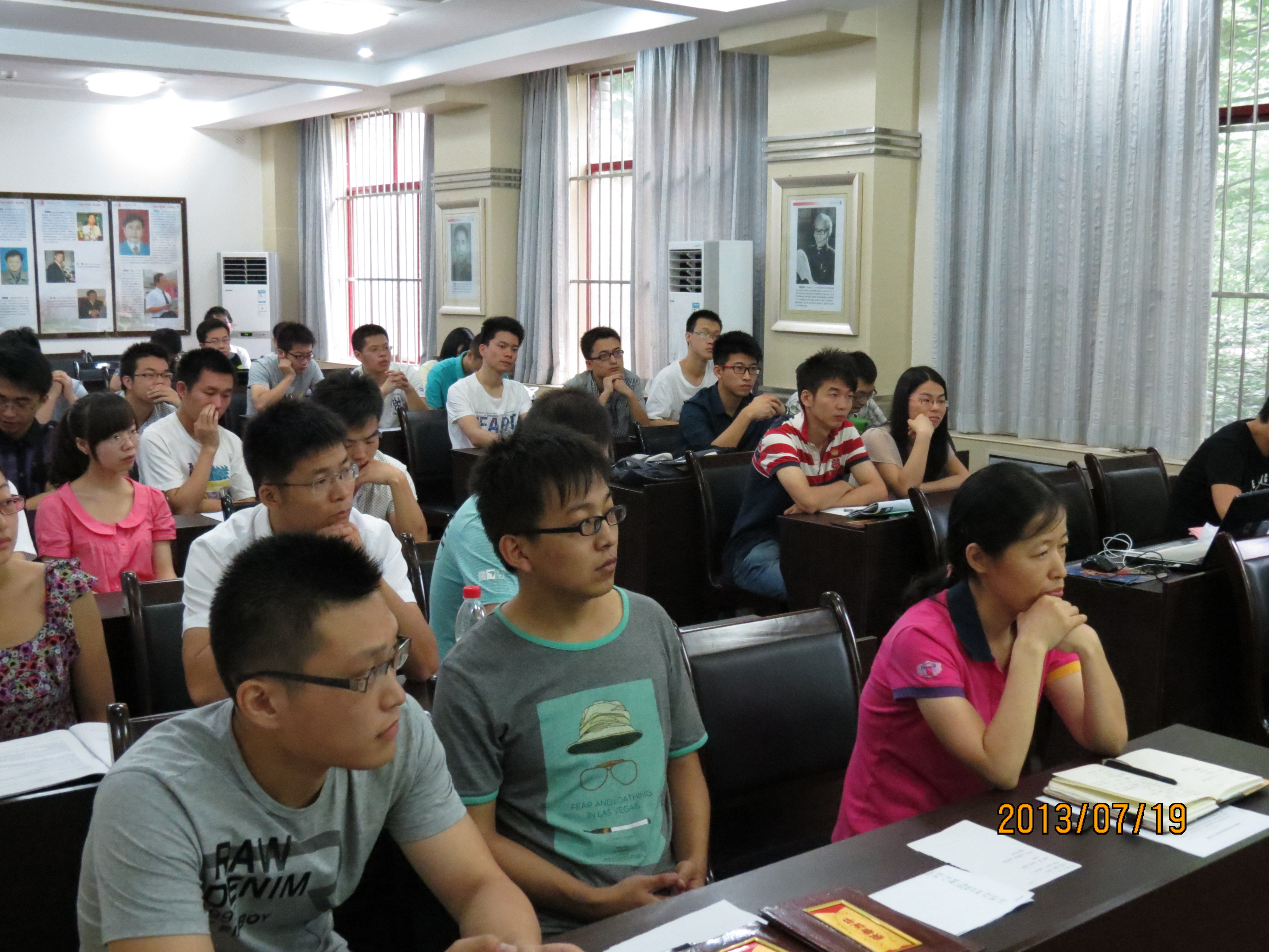 2013年7月19日下午,世俱杯官方网站党委副书记杨鹏老师、党委秘书杨彬老师、学院办公室王昌老师、研究生教务办公室孙利平老师、研工办雷励老师等学院各职能部门老师和硕博各班学生干部相聚在世俱杯官方网站第三会议室,举行2012-13学年第二学期研究生会工作总结会议和暑期安全工作会议。