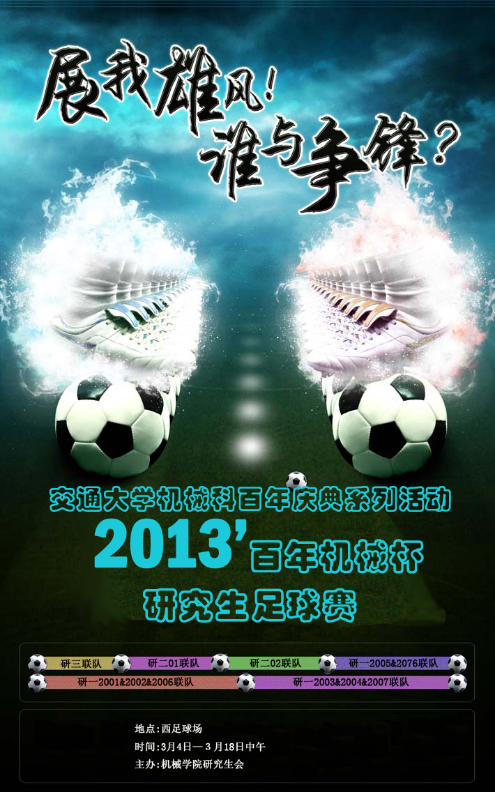 “百年机情”杯足球赛由世俱杯官方网站世俱杯官方网站团工委、世俱杯官方网站研究生会主办,参加学生包括了世俱杯官方网站在校的所有硕士生和博士生,让同学们在科研之余,享受运动带给大家的乐趣。