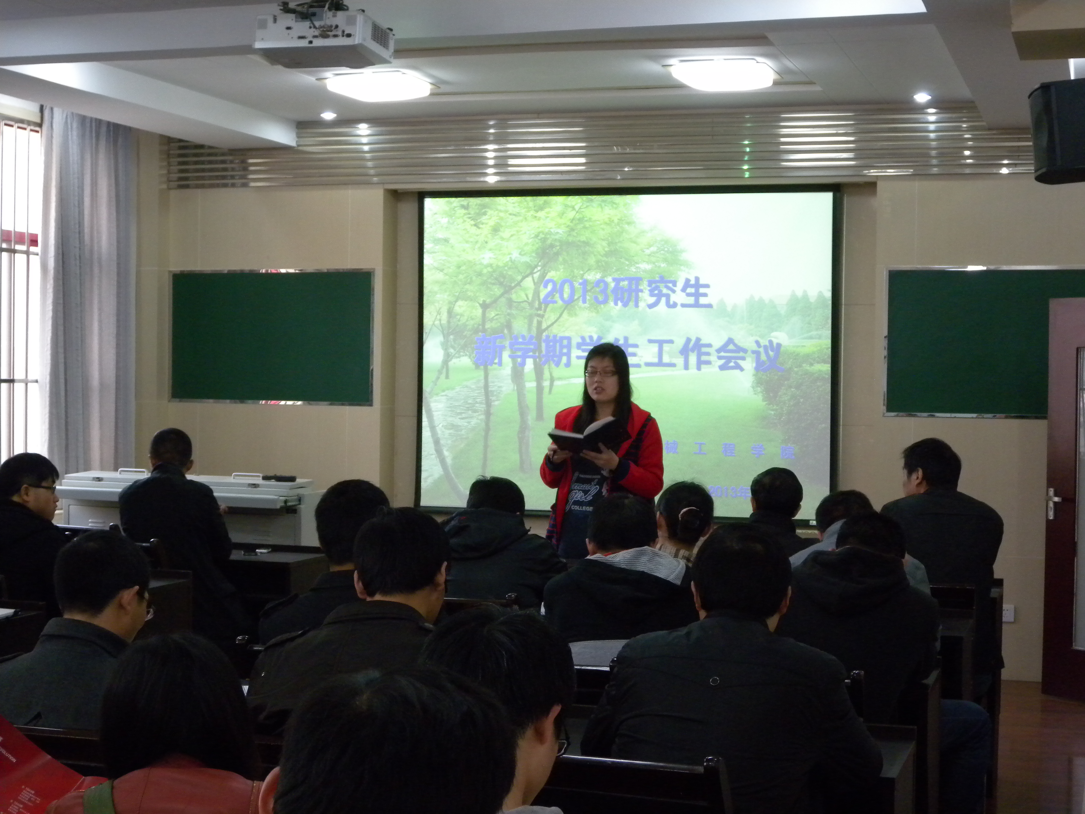 3月7日上午9:00,世俱杯官方网站在第三会议室召开2013年研究生新学期学生工作会议。参加会议的有世俱杯官方网站党委副书记杨鹏老师、学院辅导员雷励、王芬老师、研一、研二、研三各班班长和党支部书记及相关负责人。