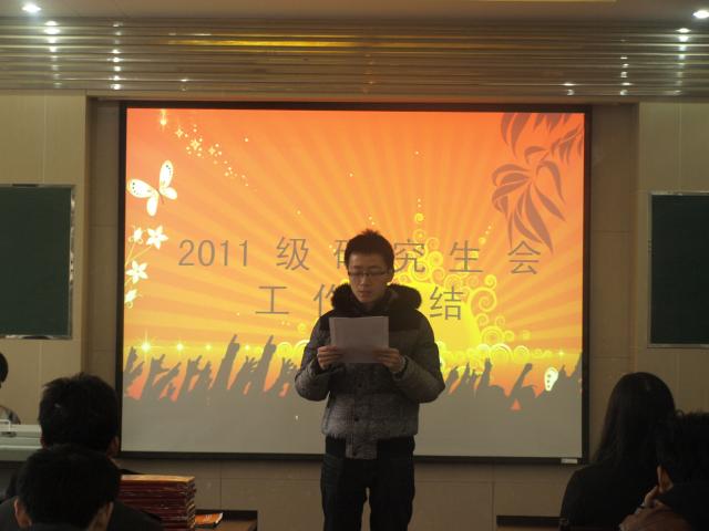 会议由本届研究生会秘书长王佳同学主持。会上,訾艳阳教授做了讲话。他首先对世俱杯官方网站研究生会近两个多月的工作做出了充分肯定,对个人以及集体在学校学院活动中所表现出的工作热情提出表扬。特别是在“中华之声”合唱比赛中,同学们所表现出的耐心、热心、激情及凝聚力深深地令他感动。随后,訾老师对合唱比赛的经验教训做出了总结。同时强调同学们一定要重视课业,努力学习,为科研做出贡献。