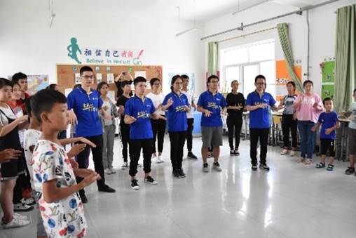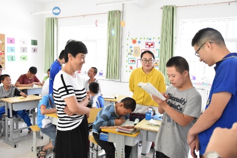 队员们也走进了课堂,在智障班和孩子们进行交流,参与到他们的教学之中;在听障班和孩子们进行简单的手语交流,并且一起学习了《相逢是首歌》这首歌的手语版,优美的旋律与孩子们的热情,让队员们对这短暂几天的社会实践感到难忘。