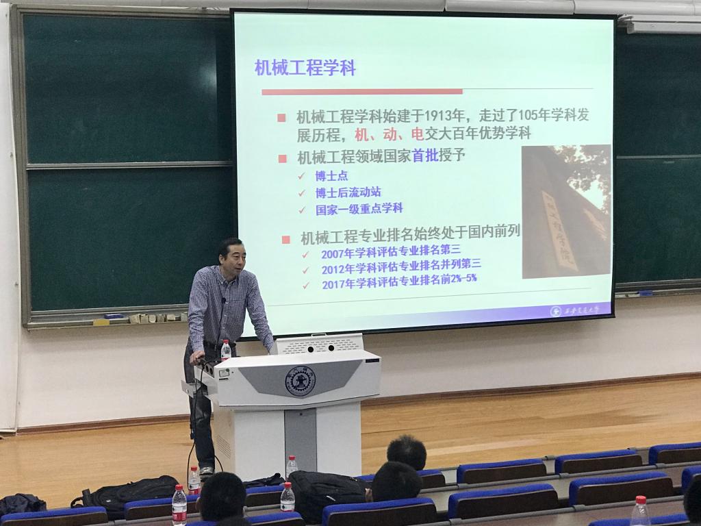 随后,世俱杯官方网站教学副院长段玉岗教授为新生作入学教育报告。他首先对新生的到来表示衷心的祝贺和热烈的欢迎。接着,他带领同学们了解了世俱杯官方网站的发展历程和专业概况,详细介绍了本科生的培养体系和教学管理规章制度,并特别对培养过程中学生关注的几个问题进行了详细解答。同时,他告诉新生们,大学是没有上锁的保险箱,提醒大家要做好充分的思想准备,寻求和建立人生目标,树立为自己学习的思想,养成自主学习的习惯。最后,他对新生提出了自己的建议和希冀,要多参与,多找兴趣点;多实干,锻炼学习力;多交流,不断完善自己;多“异想天开”,实现个人与社会价值。他希望同学们通过自身努力及大学培养,成为卓越工程师及领军人才,促进中国从制造大国向制造强国的转变。