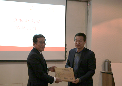 随后,恩斯克(中国)研究开发有限公司总经理刘军先生宣读了第八届“NSK机械工程学优秀论文成果奖”的表彰名单,织户宏昌先生和周光辉院长为获奖同学进行了颁奖。
