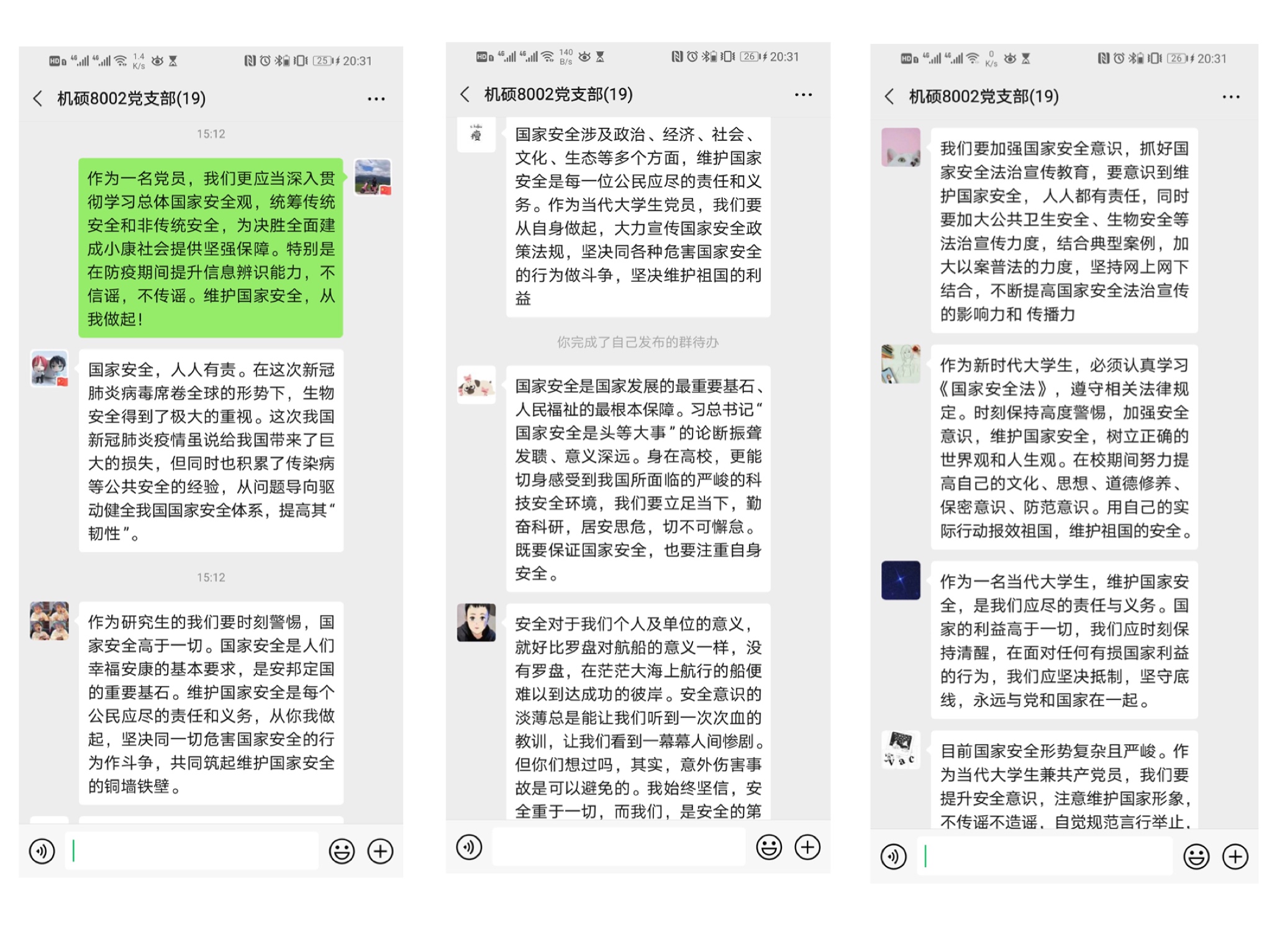 观看公开课后,党支部各党员围绕国家安全分别展开交流讨论,发表感想: