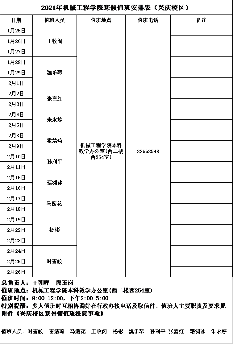 2021年世俱杯官方网站寒假值班安排(兴庆校区)
