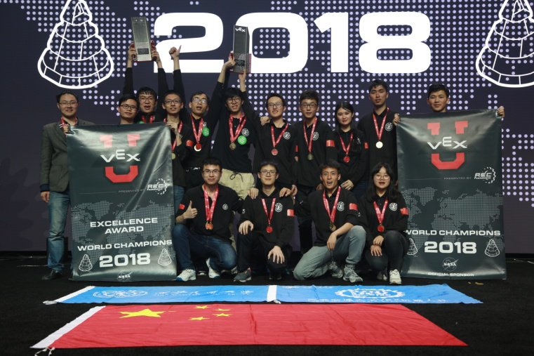 2018年包揽VEX机器人世界锦标赛“全能总冠军”、“联赛冠军”、“技能挑战赛冠军”