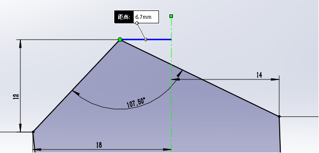 a左侧线段和顶端线段全部超出1mm缝隙0.5mm;右侧两折线段,超出1.5mm缝隙0.25mm;右下角顶点交于1mm缝隙之上,左下角顶点则取在扣板理论尺寸边界与1mm缝隙之间即可;