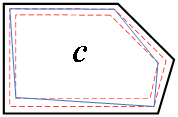 c左上与最右端部分边界超出0.6mm缝隙0.3mm;其余顶点均分别在其对应的对称轴上超出1.5mm缝隙0.45mm(即在0.6mm与1.5mm缝隙的中间)