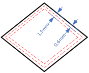 c左侧边位于1mm缝隙与1.5mm缝隙中间,顶边超出1mm缝隙0.5mm,右上边位于1mm缝隙上,底侧的水平边均位于1mm缝隙和1.5mm缝隙中间(即超出1.5mm缝隙0.25mm),至于水平边的顶点位置,均向内侧取缝隙,位于对应缝隙顶点之下。