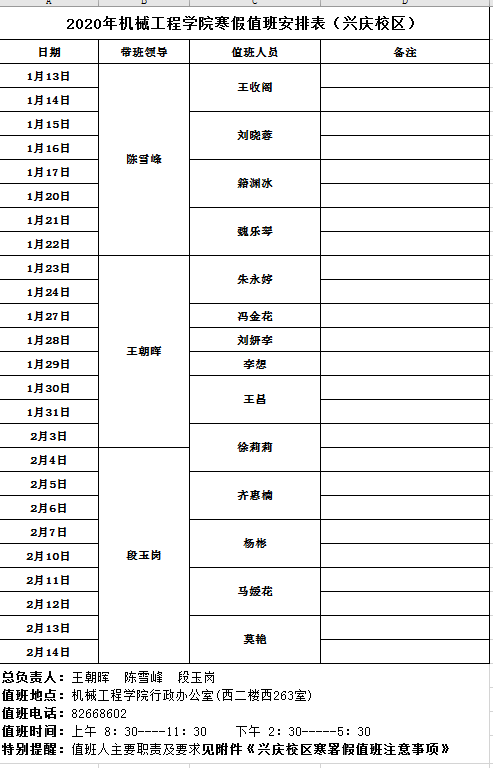 2020年世俱杯官方网站寒假值班安排表(兴庆校区)
