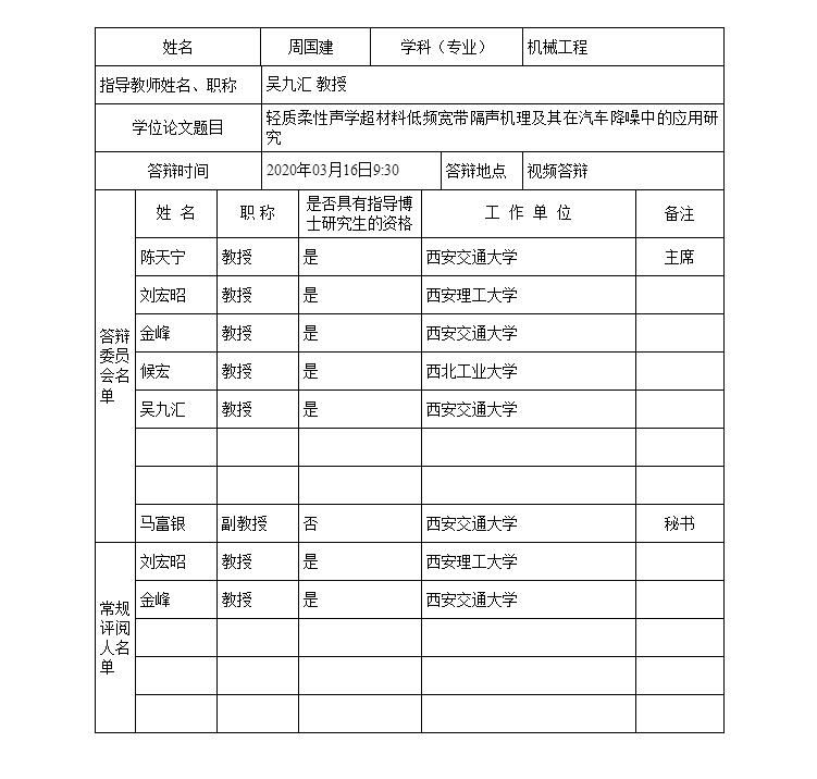 博士学位论文答辩公告表--周国建