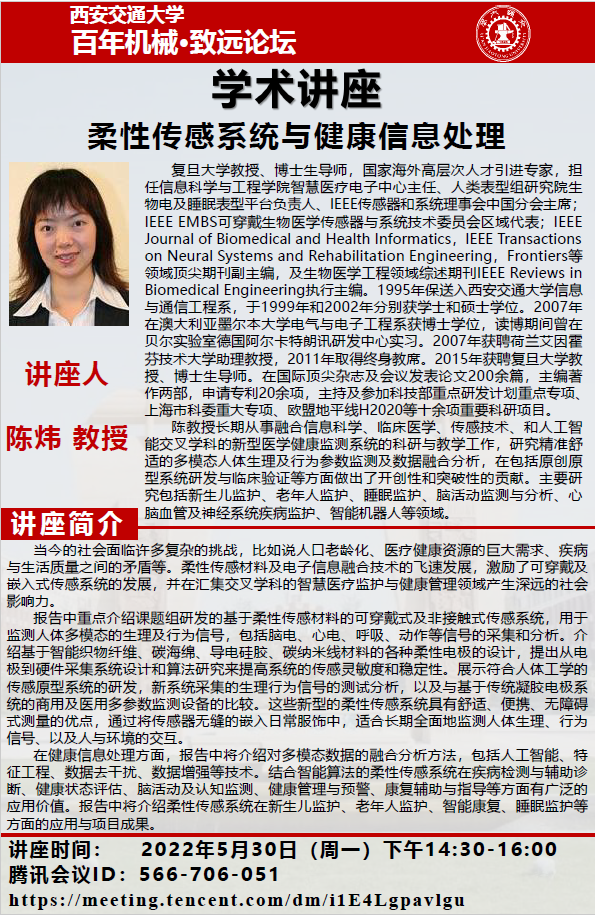 讲座题目:柔性传感系统与健康信息处理