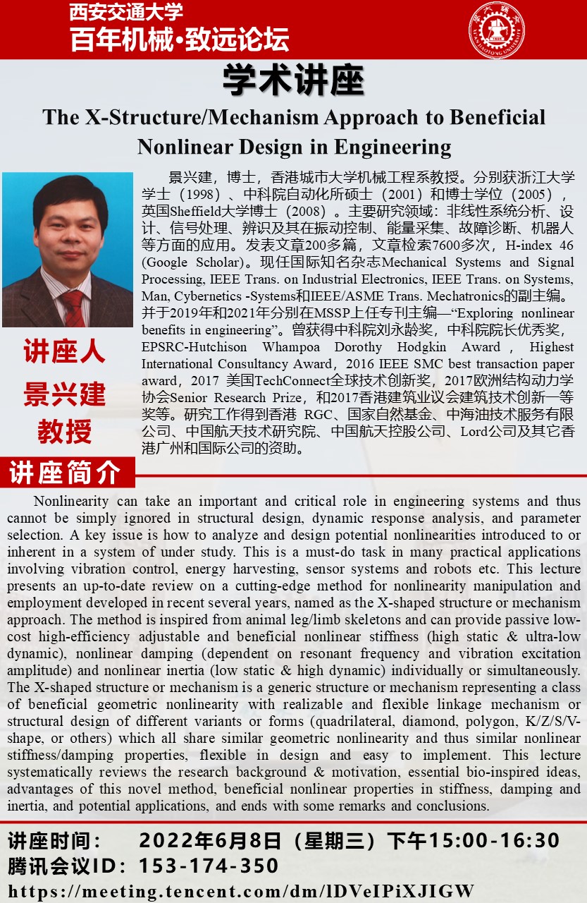 讲座题目:The X-Structure/Mechanism Approach to Beneficial Nonlinear Design in Engineering