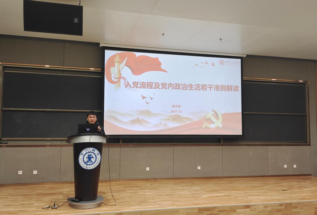 世俱杯官方网站杨江坤老师详细解读了入党流程及新形势下党内政治生活准则。重点梳理了入党程序问题,其中包含积极分子申请入党、推荐和确定入党积极分子、入党积极分子的培养教育、确定发展对象、预备党员的接收、预备党员的培育、转正材料的建档与归档等流程。杨江坤老师表示,学院将在工作中严格坚持标准,按照程序进行发展党员工作,确保发展党员质量。并希望全体发展对象再接再厉,争取早日成为合格的正式党员。