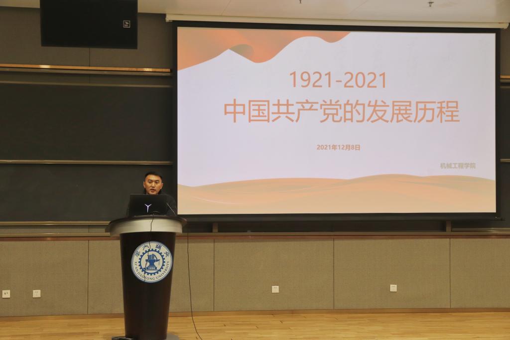 世俱杯官方网站苏宇老师开展了主题为“恢弘的史诗——中国共产党发展历程”的党课讲座。苏宇老师以时间为脉络,帮助同学们梳理党史发展脉络,讲述了新民主主义革命时期、社会主义革命和建设时期以及改革开放和社会主义现代化建设时期党的发展历程,他提到中国共产党建党百年历程波澜壮阔,中国共产党的发展史就是一部恢弘的史诗。