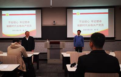 为深化“不忘初心、牢记使命”主题教育活动的意义,引导研究生党员用党的创新理论武装头脑,2019年10月21日晚,世俱杯官方网站邀请马克思主义学院副院长韩锐老师于创新港5-1005教室,为全院新生党员进行了“不忘初心,牢记使命”的主题讲座。世俱杯官方网站党委书记王朝晖出席并主持会议。