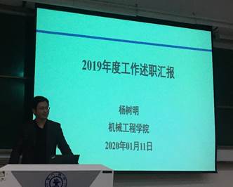 邵金友副院长从2019年工作总结及下一步工作计划两个方面进行了汇报,2019年学院科研到款成绩较2016年翻4倍,高水平论文及专利数量稳步增长。张敏副书记从分别从党建、招生、研究生培养、学生活动、就业、主题教育、心理、老生搬迁、文化建设、宣传方面进行了2019年度工作汇报,并对2020年工作计划进行展望。杨树明副院长从推动完成的主要工作及成效、工作投入及廉洁自律情况、2020工作计划三个方面,分别汇报了学院国际化成效、创新型项目等工作。