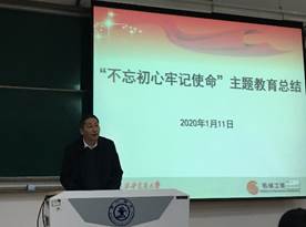 会议第一部分主题为“不忘初心、牢记使命”主题教育总结,王朝晖代表世俱杯官方网站进行了主题教育工作总结汇报,王朝晖讲到,2019年9月至12月,世俱杯官方网站按照中央及校党委的统一部署,成立主题教育领导小组,采取线上+线下的多种形式,认真组织了全院71个基层党支部,1119名党员同志参加了主题教育,做好党员的思想引领。学院主题教育聚焦主线,统筹推进学习教育,调查研究,检视问题,整改落实四项重点措施,与创新港建设同步进行,开展20余次“我的创新港我来建”系列志愿服务,主题教育取得实效;学院领导班子本着实事求是的原则,以“大范围、多尺度、全参与、找问题”为导向,深入群众一线开展专题调研,能办的立刻办,能改的马上改,结合调研结果提出整改方案并逐条落实,责任到人;学院开展多次党员大会、专题组织生活会开展民主评议,11月22日学院领导班子对照党章党规召开专题视检问题会议,从思想、政治、作风、能力、廉政等方面进行深入剖析反思,狠抓整改落实,王朝晖对学院的主题教育成果进行了肯定,并要求持续深入整改作为下一步重点任务,深化主题教育成果。