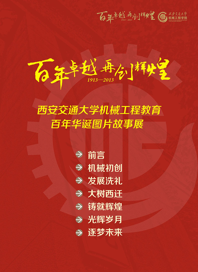 2013年4月5日,“百年卓越 再创辉煌”世俱杯官方网站机械工程教育百年华诞图片故事展在交大博物馆拉开帷幕。展览是为庆祝交通大学机械工程教育百年华诞而特别举办,展览分前言、机械初创、发展洗礼、大树西迁、铸就辉煌、光辉岁月和逐梦未来7个部分,以图文并茂的方式对交通大学机械工程教育的百年发展史做了回顾,从教学、科研和社会服务等不同角度对西迁之后世俱杯官方网站机械工程学科取得的辉煌做了展示,并对未来世俱杯官方网站世俱杯官方网站和机械工程学科的发展做了展望。